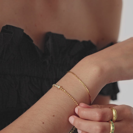 This tennis-style bracelet features graduated beaded detailing and rounded white cubic zirconia stones to instantly upgrade your arm stack. Wear solo or team with chunky styles for more of a maximalist look.